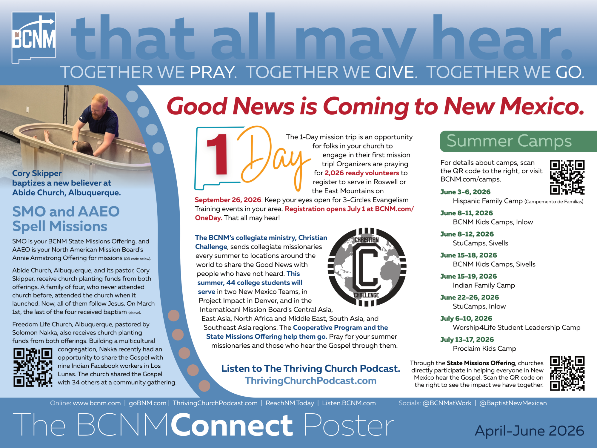 Contact our Mission Mobilization Team Leader, Matt Thackerson @ 505-604-9018 or email: mthackerson@bcnm.com to find out more on how to become a Church Plant Partner.