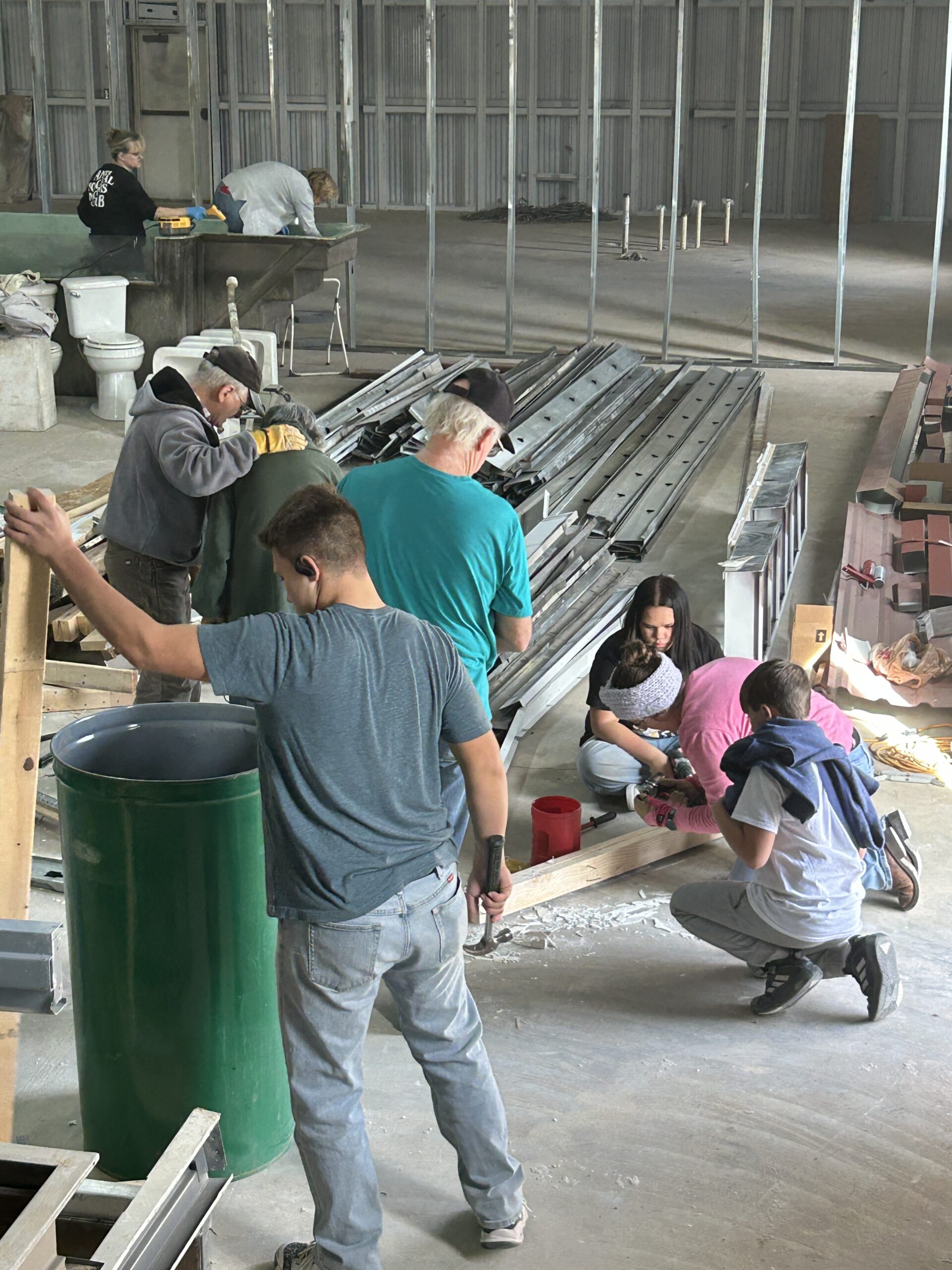 Baptisterio, calentador de agua eléctrico, marcos de puertas de acero, pasamanos de madera (4 piezas, 6 pies de largo), puertas comerciales, espejos de baño, material para estructuras de acero, baldosas de cerámica de 16 pulgadas, lavabo y grifo para conserjes, inodoros y urinarios. Si está interesado, comuníquese con el Pastor Mason al 575-644-0592