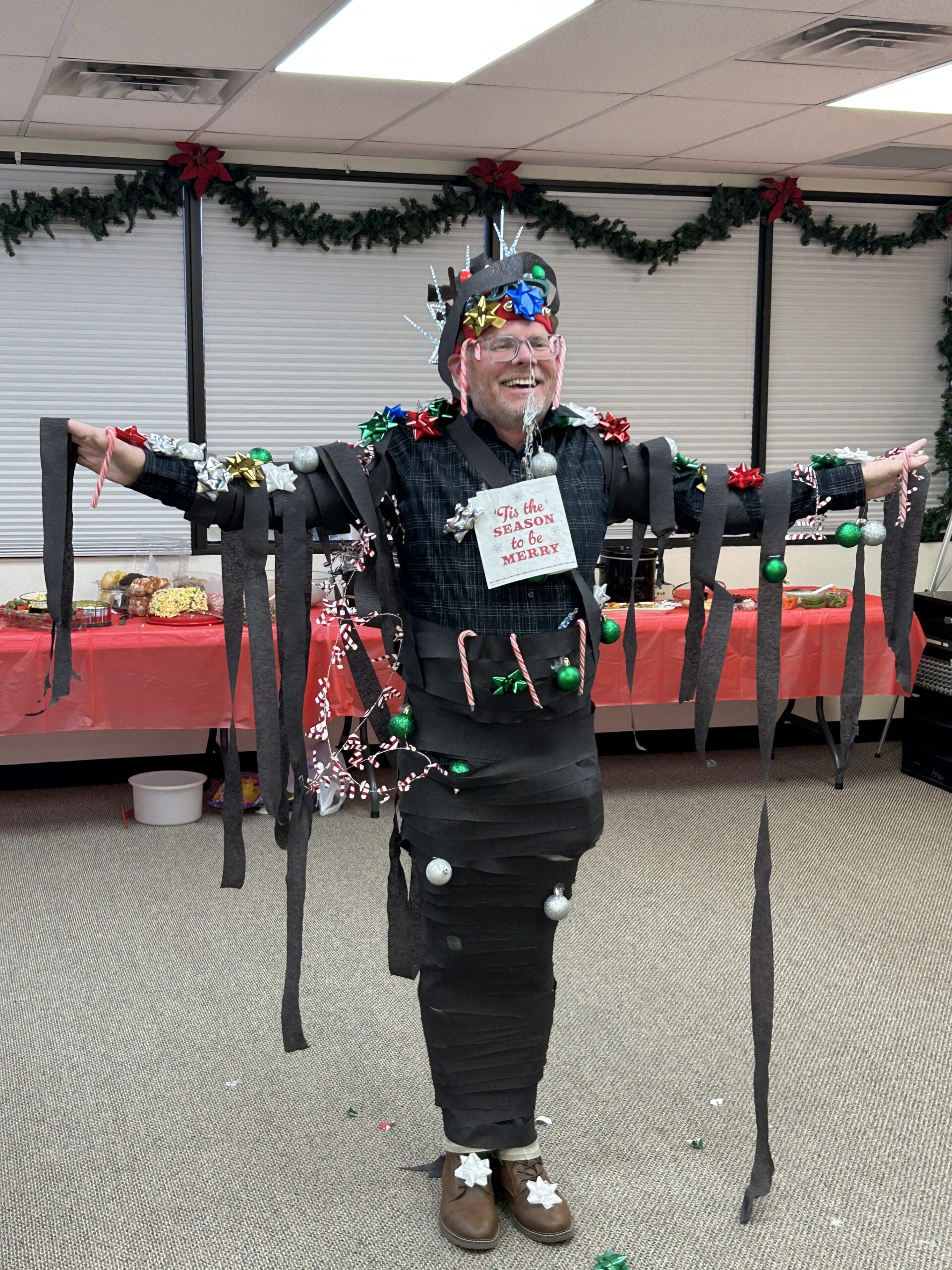 ¡El fantasma de la navidad pasada, nuestro intrépido líder de BCNM, Steve Ballew, sacrificándose por el equipo en nuestra fiesta de Navidad y sus venaditos!